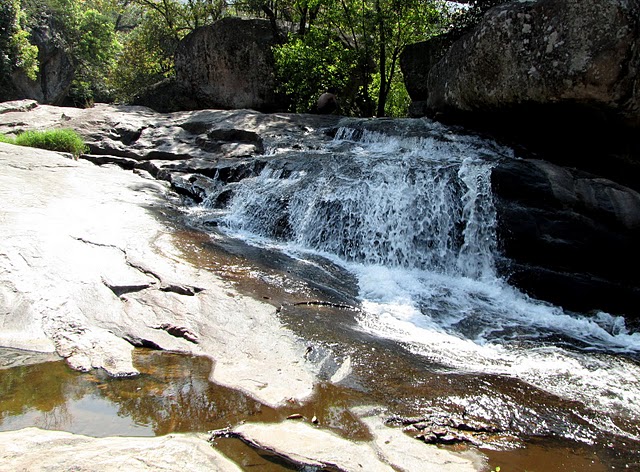 After the continuous slide for about 2 hours, we were all very dirty and thorns had scratched us here and there. We cajoled Mani to take us to a stream or waterfall or a nice pool so that we could wash ourselves and freshen a little bit from all the dust. The climb down was still on but this time we were on a trail, which quickly came to an end much to our chagrin.